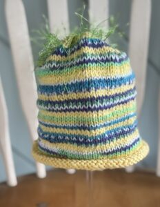Acrylic and wool, cornflower blue with soft white/blue green, size 6-15 months, price $15