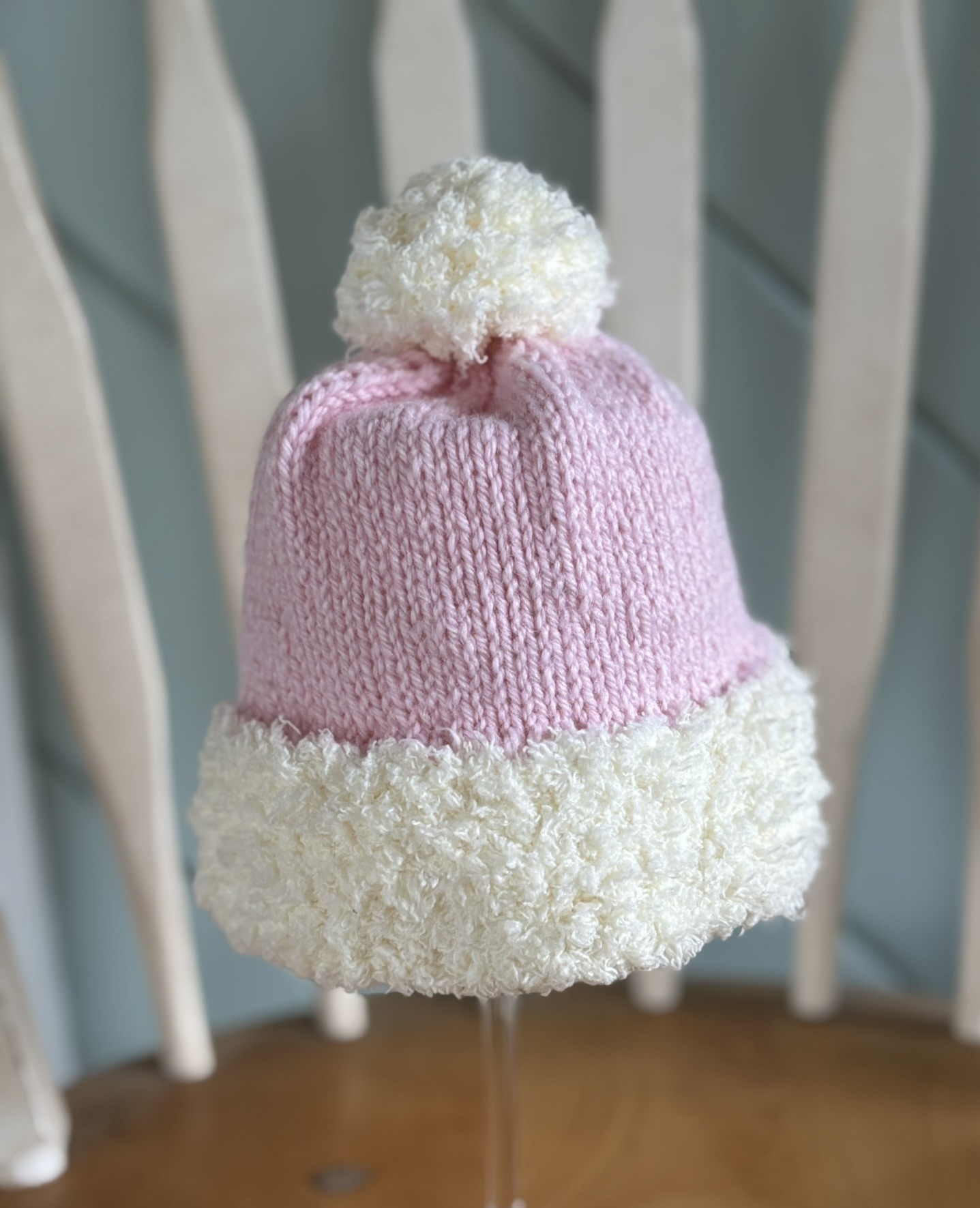 Acrylic and wool, soft pink and cream, size 6-15 months, price $15