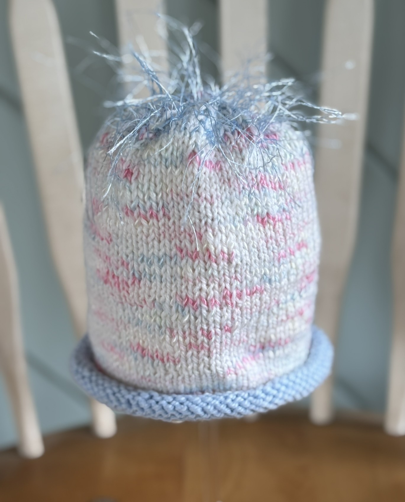 Acrylic, nylon, wool blend, pale blue, pink, white, size 6-15 months, price $15