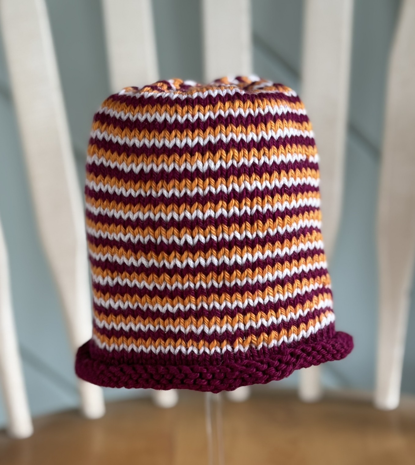 Acrylic and cotton, magenta, orange, and white, size 6-15 months, price $15